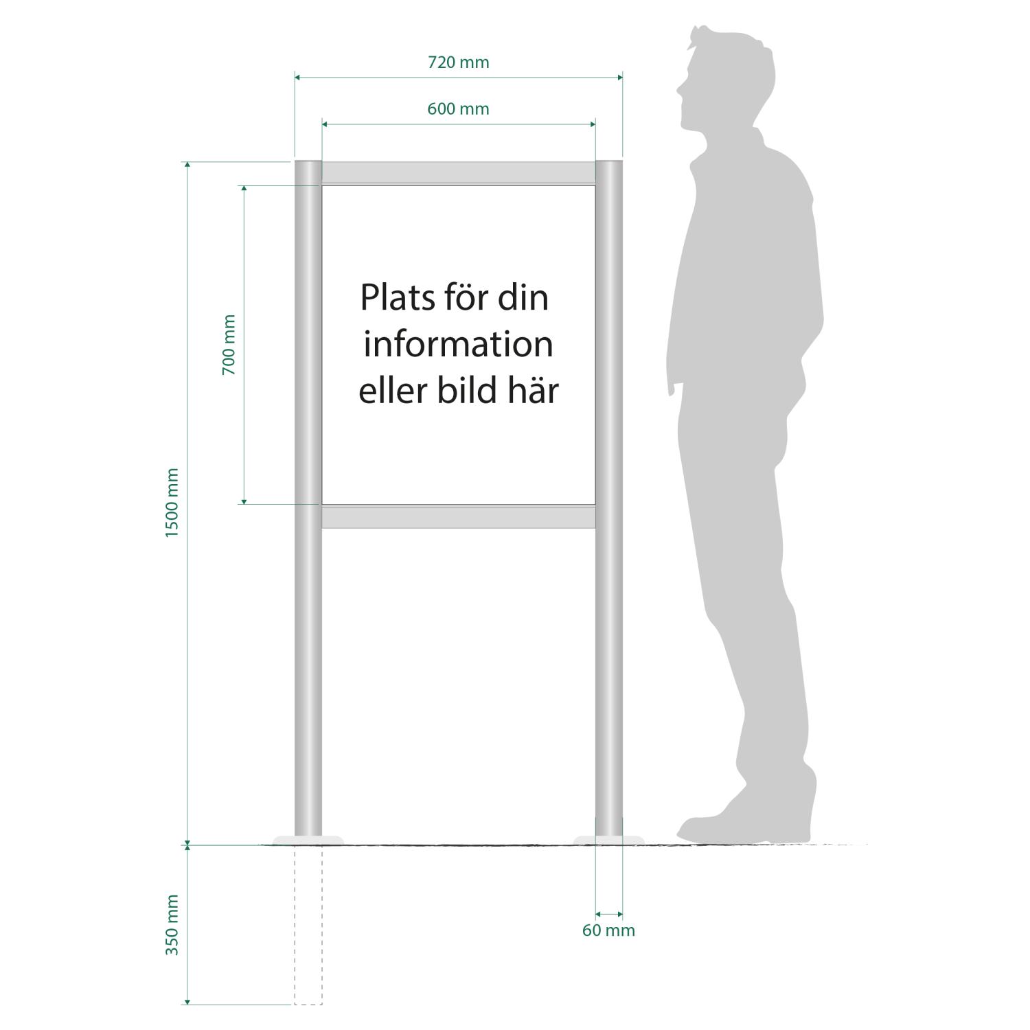 - 350mm extra längd på stolprör för inpassning i fundament ingår.