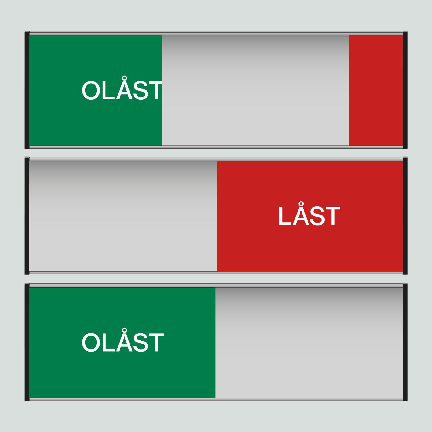 Skylt ca 207x62mm. OLÅST/LÅST, med reglerbar skjutpanel (utan text).