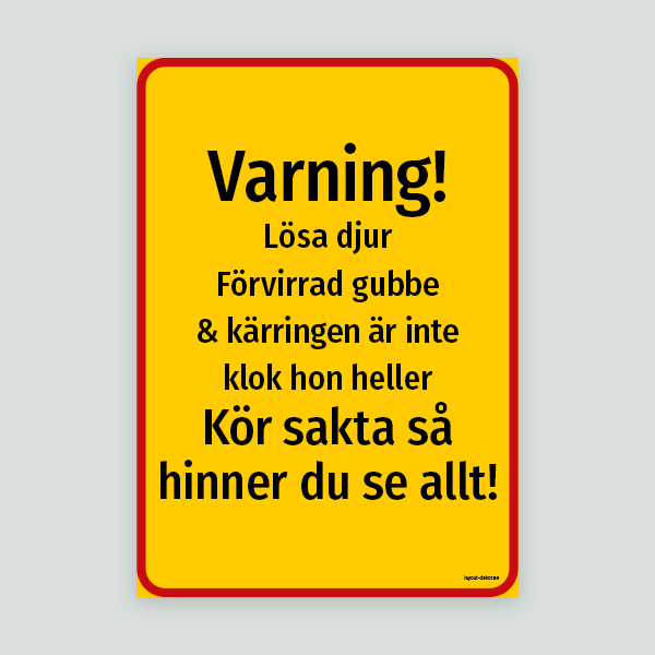 Varning! Lösa djur Förrvirrad gubbe & kärringen - Varningsskylt